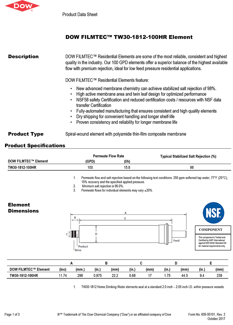 DOW FILMTEC TW30-1812-100HR