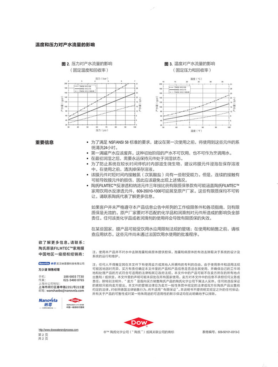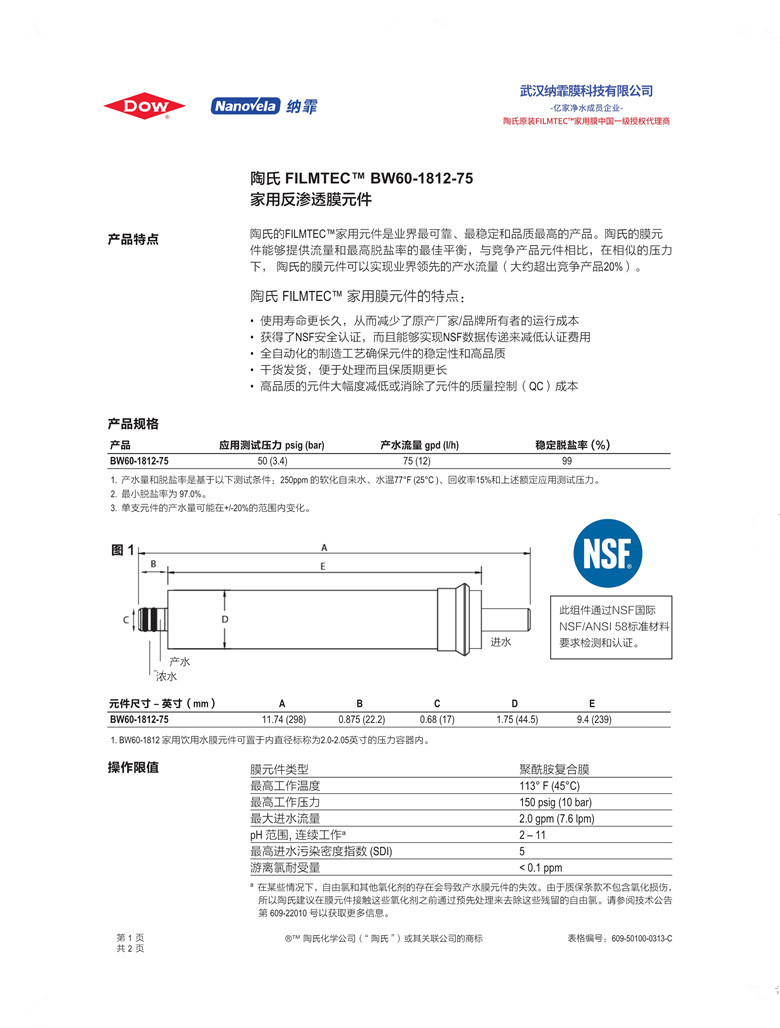 陶氏原裝FILMTEC家用超高脫鹽率反滲透膜75GPD