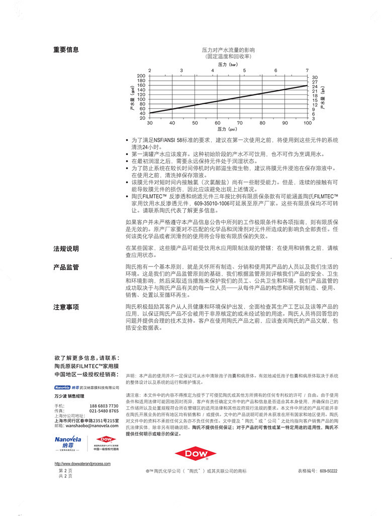 陶氏原裝 AQUALAST1812 節水型家用 反滲透膜元件